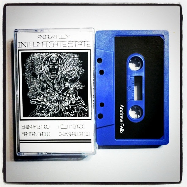 Andrew Felix bridges into experimental sounds and bizarre noises with smashing beats and electronics. Intermediate State is an eerie release of psychodelica. The album moves in trance like waves, a total mind numbing experience and pure fucken bliss. Limited to 32 chrome purple tapes.